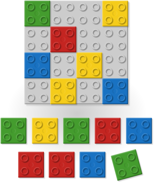 Comment placer les briques colorées pour qu'une même couleur n'apparaisse qu'une seule fois dans chaque ligne et dans chaque colonne ?