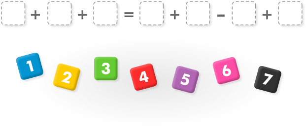 Placez les nombres de 1 à 7 de telle sorte que l'égalité soit vérifiée.