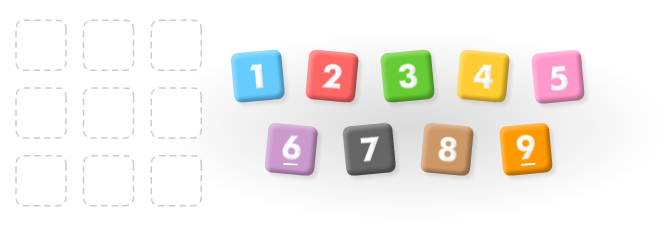 Replacez les jetons 1 à 9 dans les cases de manière à ce que :