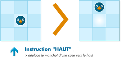 L'objectif de ce défi est de programmer le parcours du manchot à l'aide d'un ensemble de cinq instructions :